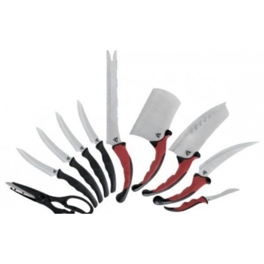 Setul de 11 cutite vine in ajutorul celor care gatesc, cu lame deosebit de ascutite si rezistente.
