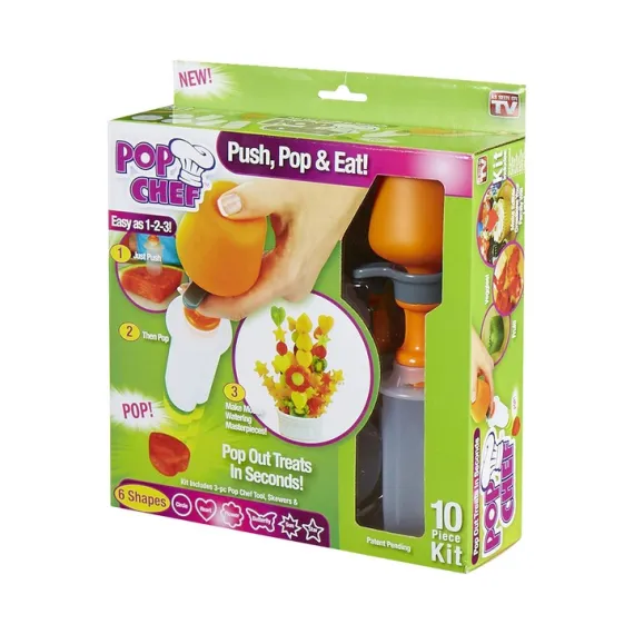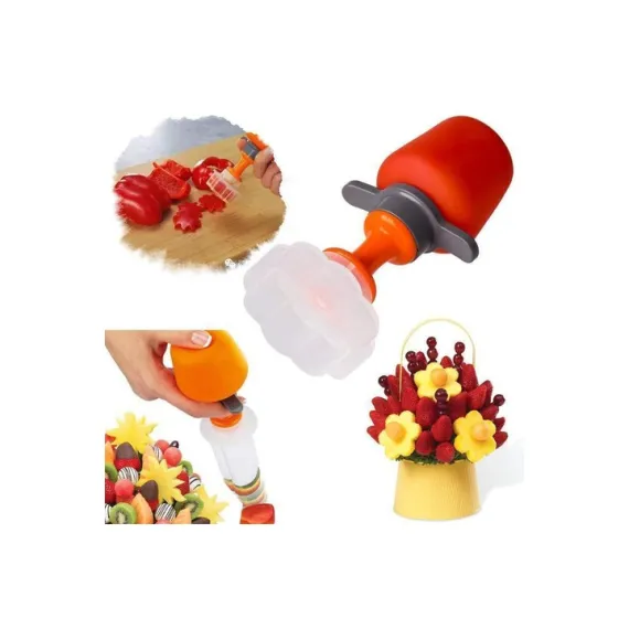 Aparat pentru ornat si decorat prajituri MagicCut Aparatul pentru ornat MagicCut este cadoul de bucatarie cu ajutorul caruia gatitul devine mai interesant si amuzant. Cu MagicCutf puteti face in cateva secunde diverse forme delicioase, gustari sanatoase, decoratiuni pentru torturi sau prajituri, etc. MagicCut este usor de folosit, doar impingeti, apoi apasati pentru a forta aerul si veti realiza astfel capodopere delicioase. Creati gustari sanatoase, si transformati masa intr-o distractie. Cu MagicCut masa este gata in cateva secunde, astfel incat toata lumea se poate bucura de cadouri festive in forma de inima, aranjamente luminoase de fructe proaspete, branzeturi delicioase, biscuiti si multe altele. Apasati pe legume, fructe, aluat, martipan si apoi eliberati bucata in forma dorita. Transformati sandwich-urile banale in unele spectaculoase, realizati platouri cu legume si fructe senzationale, decorati prajiturile si torturile cu ajutorul MagicCut Pachetul contine 6 forme diferite: cerc, inima, floare, future, soare si stea si 6 betisoare. Transformati mancarea intr-o opera de arta cu kit-ul de bucatarie MagicCut. Caracteristici: – usor de utilizat – dispozitiv ideal pentru a realiza instant decoratiuni pentru prajituri, torturi, gustari, sandwich-uri, etc. – MagicCut contine 6 forme diferite: cerc, inimioara, floare, fluture, soare si stea. Dimensiuni forme pentru decupat si decorat: – Floare: Diametru 5.8 cm, adancime 2 cm – Stea: Diametru 4 cm, adancime 2 cm – Fluture: Latime 4.8 cm, inaltime 3 cm, adancime 2 cm – Stea alungita: Diametru 3 cm, adancime (lungime) 7.5 cm – Cilindru simplu: 2.7 cm, adancime (lungime) 7.5 cm – Cilindru inimioara: 4 x 3.5 cm, adancime (lungime) 7.5 cm Pachetul MagicCut contine: – 6 forme diferite; – 6 betisoare bambus; – pompa