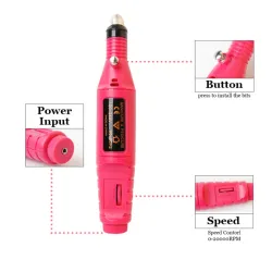 Freză electrică pentru manichiură – pedichiură, carcasă plastic de culoare roz.