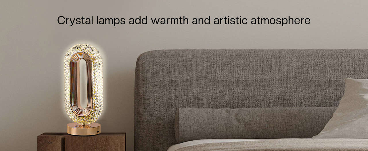 Aceasta lampa LED decorativa este alimentata de o baterie reincarcabila de 2000 mAh, ceea ce o face portabila si usor de mutat in orice locatie. Designul oval, cu dimensiuni compacte (26×12.5×9.5 cm), se integreaza perfect in orice decor, adaugand un plus de rafinament si stil. Abajurul din cristal acrilic difuzeaza lumina intr-un mod uniform, creand o lumina ambientala relaxanta si protejata pentru ochi.