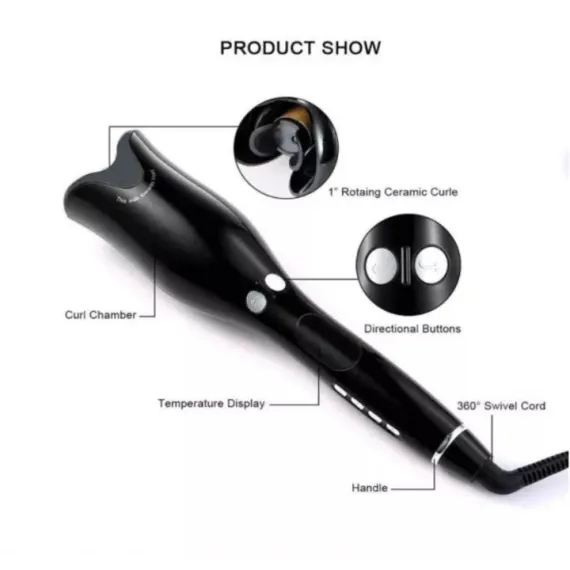 Tip: Ondulator rotativ Tensiune: 110-220V (Tensiune universala globala) Frecventa: 50 / 60HZ Putere: 55W Material: ABS Materialul conductorului termic: aliaj de aluminiu Diametrul conducerii caldurii: 16MM-20MM Controlul temperaturii si controlul eficientei: ecran LCD, temperatura reglabila (80-210; 180-410) Lungimea cablului de alimentare: aproximativ 1,8 metri, rotatie de 360 de grade.