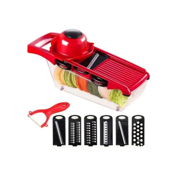 Razatoare Si Feliator Legume/ Fructe Mandoline Slicer 6 in 1, grosime taiere reglabila 1-9mm Rosu