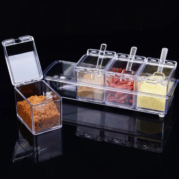 Set 4 borcane condimente transparente