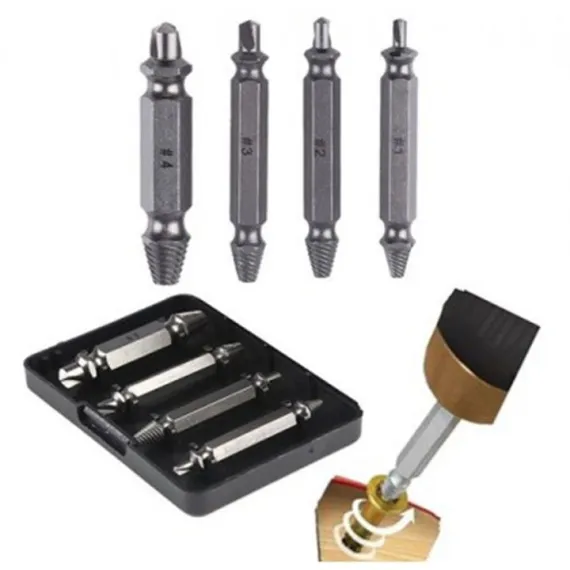 Setul de 4 extractoare Speed out pentru suruburi rupte sau uzate este excelent pentru: constructori, tamplari, mecanici auto, proiecte do it yourself, hobby etc. Este un set excelent pentru oricine.
