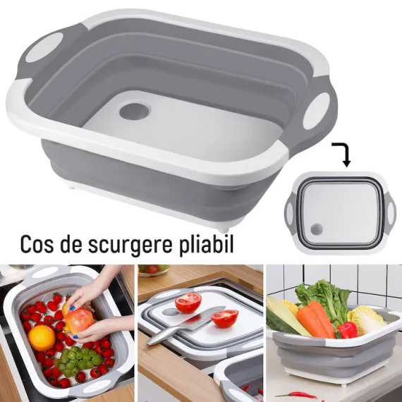 Tocator multifunctional, 3 in 1, tocator, cos depozitare, vas pentru spalare, pliabil, 40×30 cm