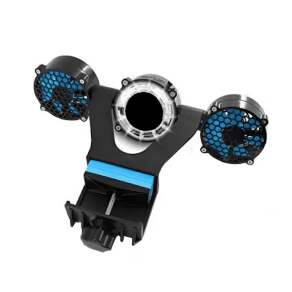 Acesta dispune de 2 ventilatoare puternice si rezistent, alimentate de la baterii